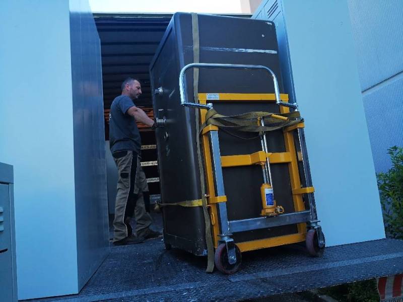 Nous livrons du matériel médical, des coffres-forts, des armoires fortes, des baies télécom et informatique avec câblage, du matériel de reprographie, des machines-outils ( presse, massicot etc)